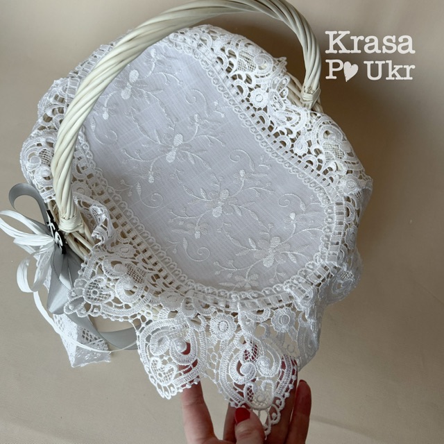 ❤️ Рушник вишитий з ажуром 40*30 см, атласна – дизайн “білим по білому”